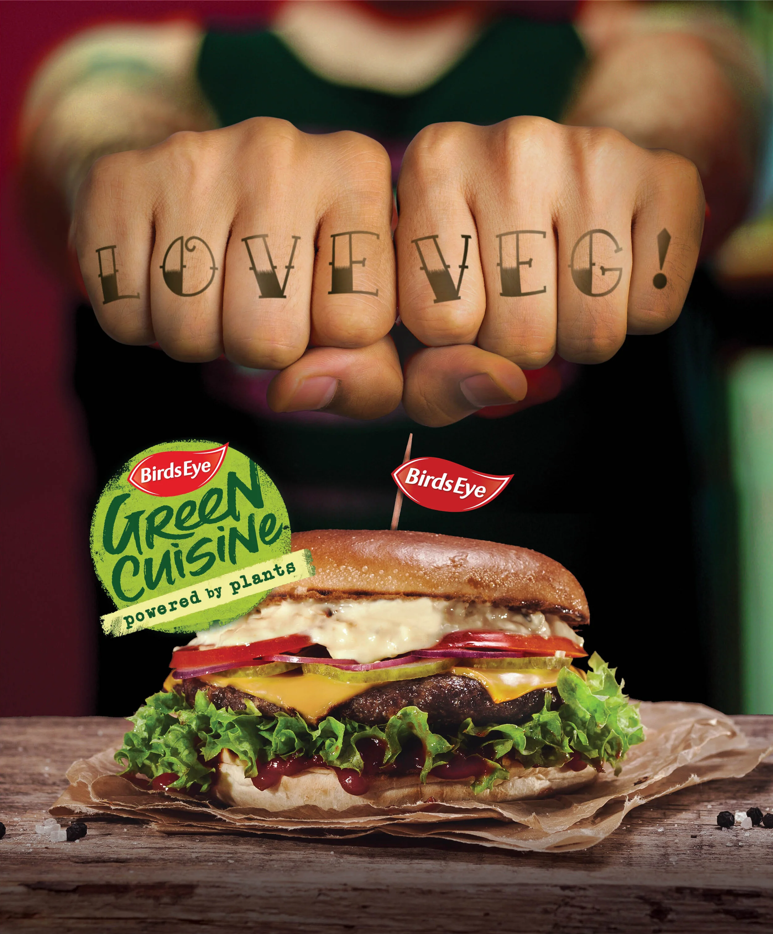 Develop a campaign to introduce Birdseye’s Green Cuisine range of vegetarian meat substitutes, emphasizing their bold flavors and hearty textures. The objective was to challenge preconceptions about veggie burgers, positioning them as a delicious, satisfying alternative to traditional meat-based options.