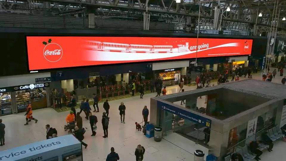 Utilszing Coca-Cola’s signature red and white color scheme and vector-style graphics, the ad stands out as instantly recognizable, evoking nostalgia and holiday spirit. The combination of warm, festive messaging with the playful animation creates a truly captivating experience for commuters, making it a memorable part of their holiday travels.